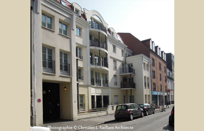 Pour cet immeuble de logements situé à Lille l’intégration à été réalisée en s’inspirant, en tenant compte du contexte existant dense.